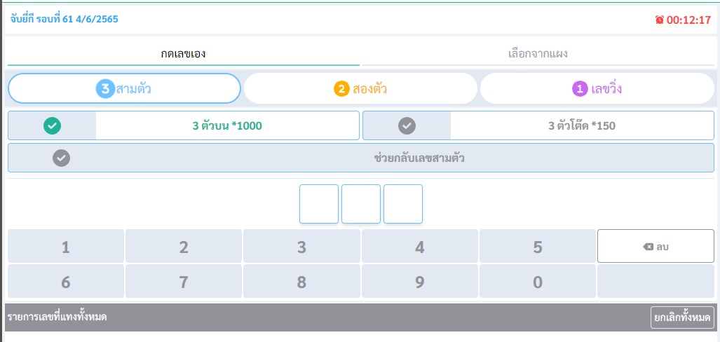 เริ่มแทงได้เลย เลือกเลขและใส่ราคา